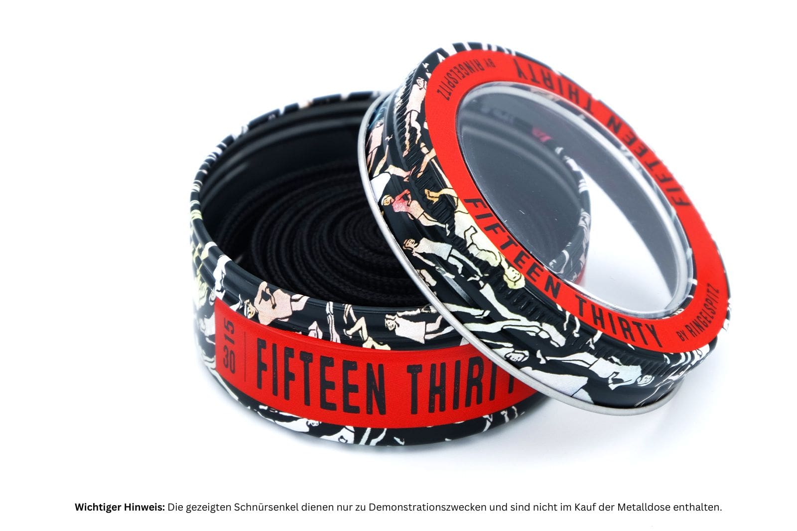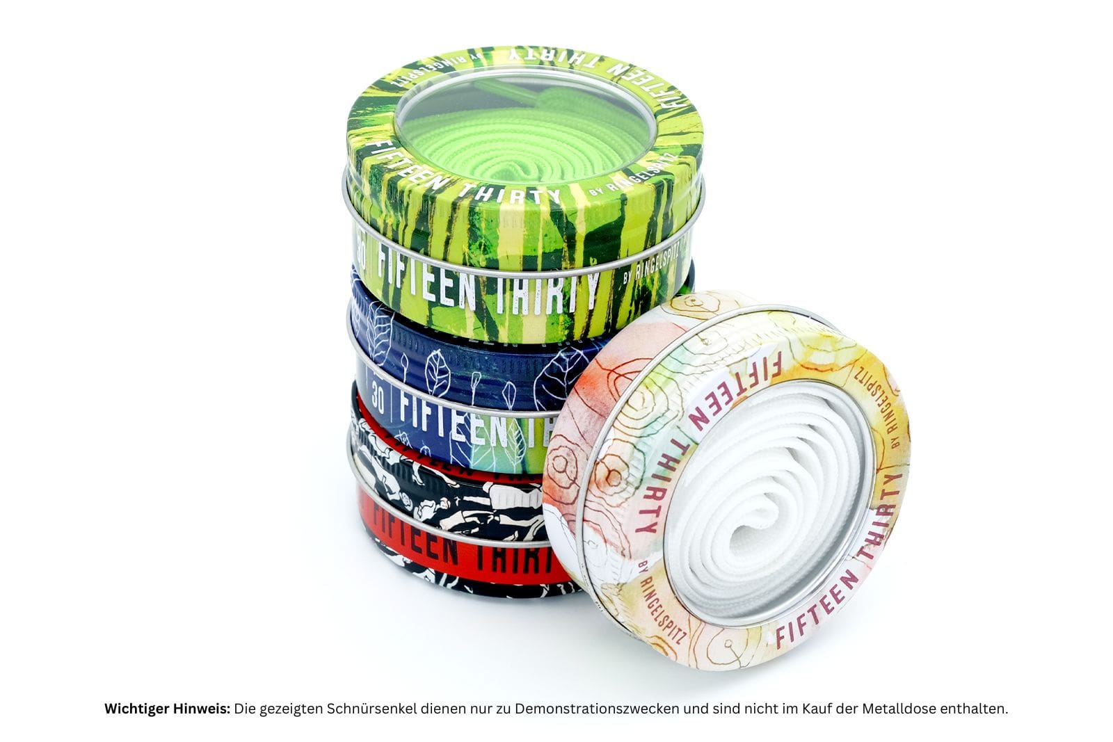 Wichtiger Hinweis: Die gezeigten Schnürsenkel dienen nur zu Demonstrationszwecken und sind nicht im Kauf der Metalldose enthalten.