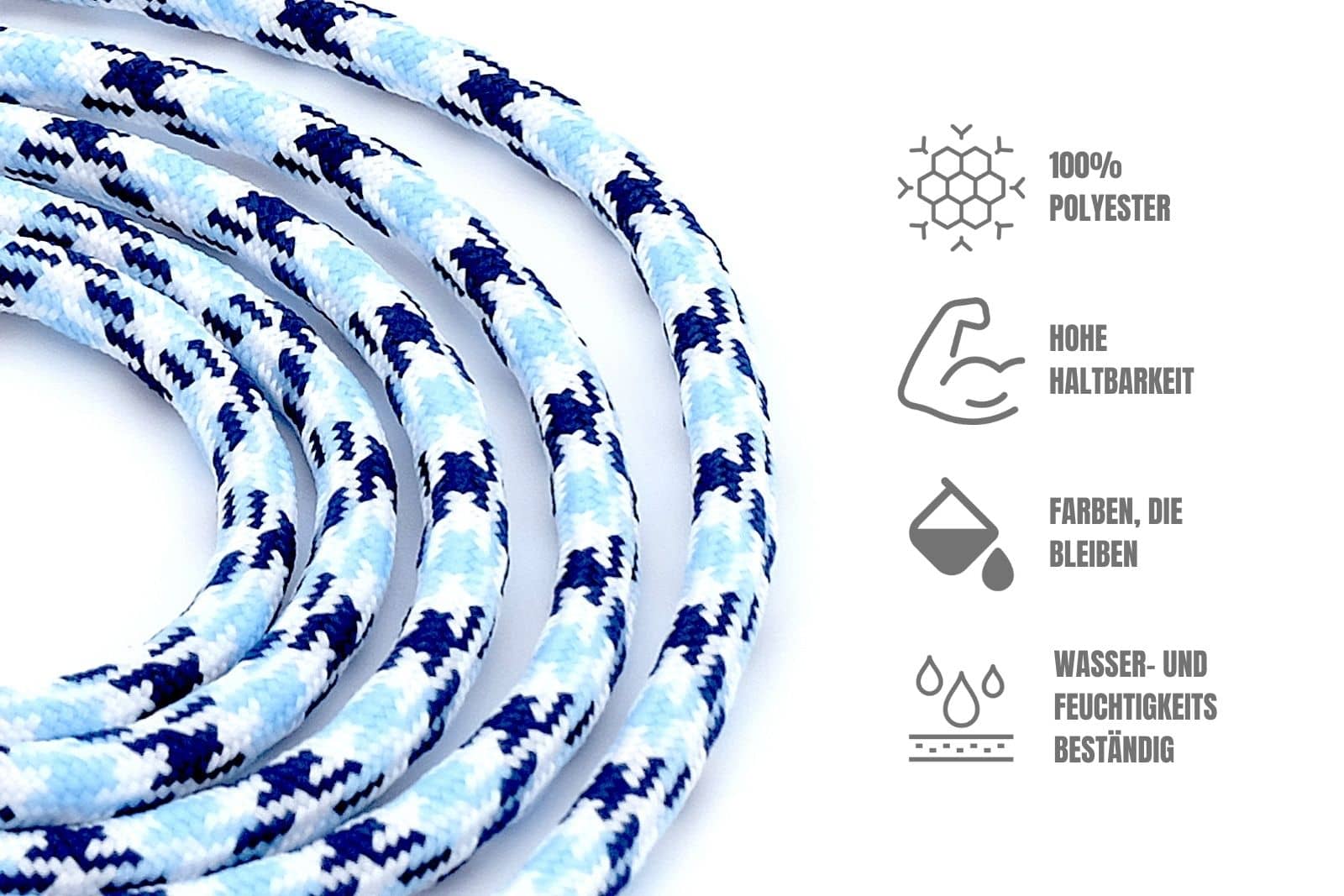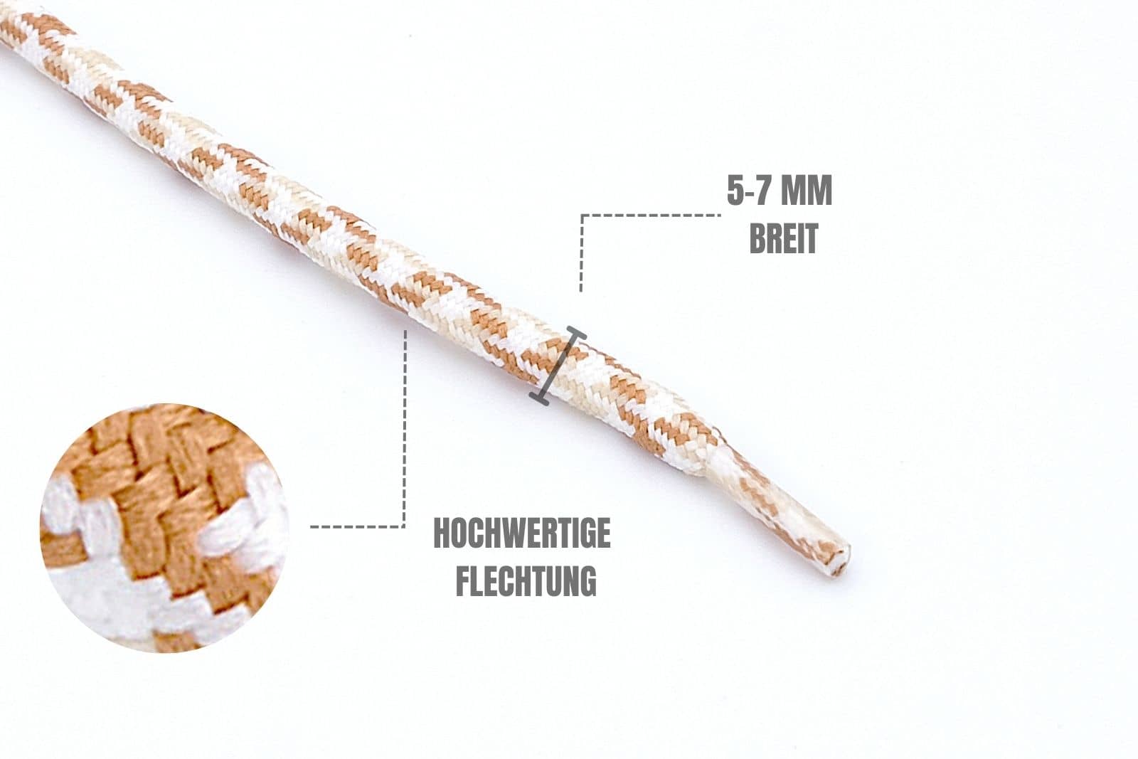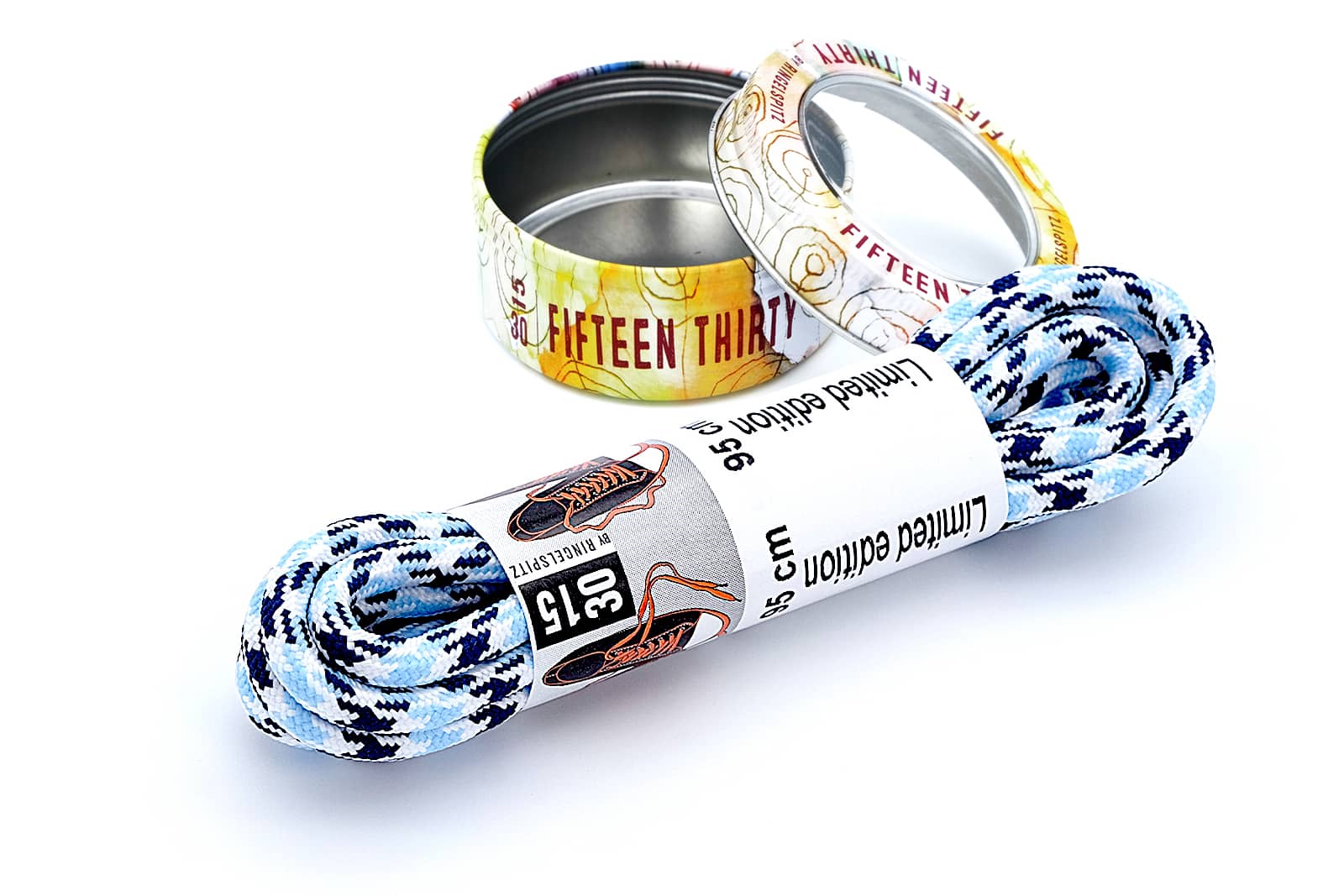 Unsere limitierten Rundsenkel aus Polyester bieten Haltbarkeit und lebendigen Stil, perfekt für den Alltag und Sportschuhe. Diese 3 mm dicken Schnürsenkel sind in zwei dynamischen Farbkombinationen erhältlich – „Blau/Weiß/Navy“ und „Creme/Weiß/Safran“ – und verleihen deinem Schuhwerk eine besondere Note. Mit einer Länge von 95 cm sorgen sie für eine optimale Passform für eine Vielzahl von Schuhtypen.