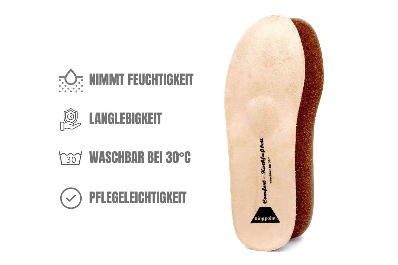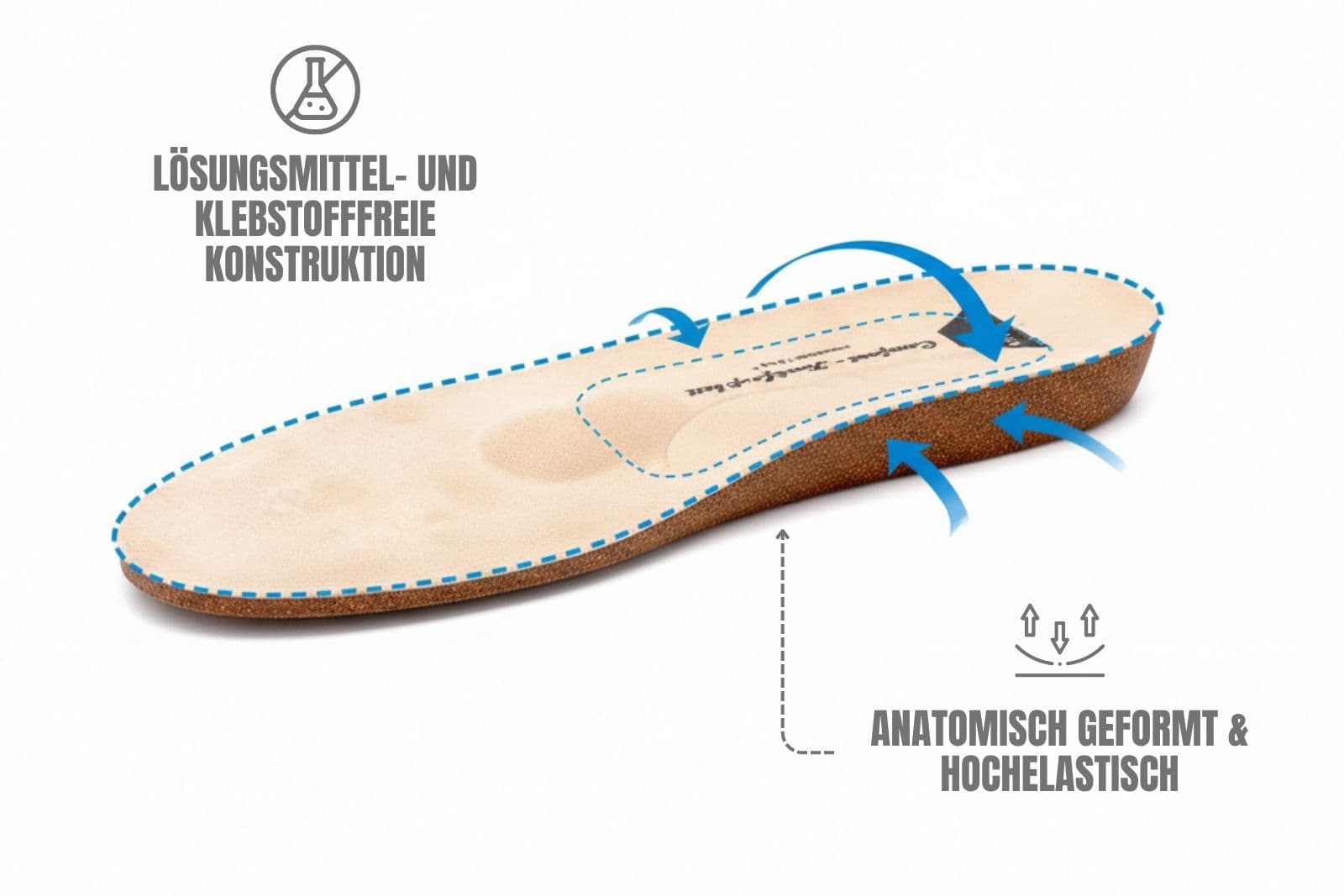 Wenn Du nach einem saugfähigen, anatomischen & elastischen Fußbett suchst, das waschbar ist und gleichzeitig frei von Klebstoffen und Lösungsmitteln dann ist dieses Kork Fußbett genau die richtige Wahl für Dich.