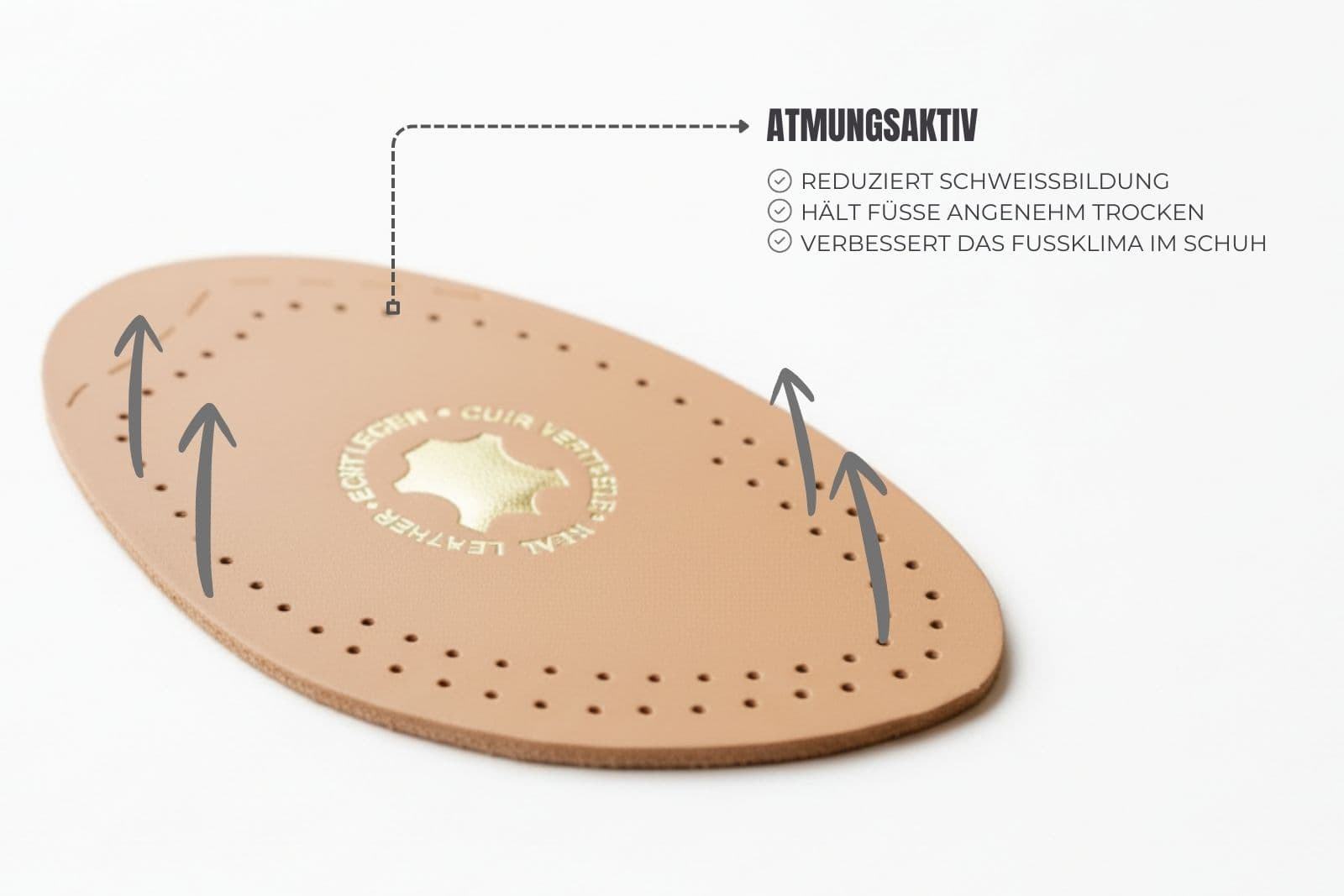 Die enthaltene Aktivkohle neutralisiert unangenehme Gerüche zuverlässig, während die weiche Lederoberfläche beim Gehen Stöße reduziert und Deinem Schritt mehr Komfort verleiht.