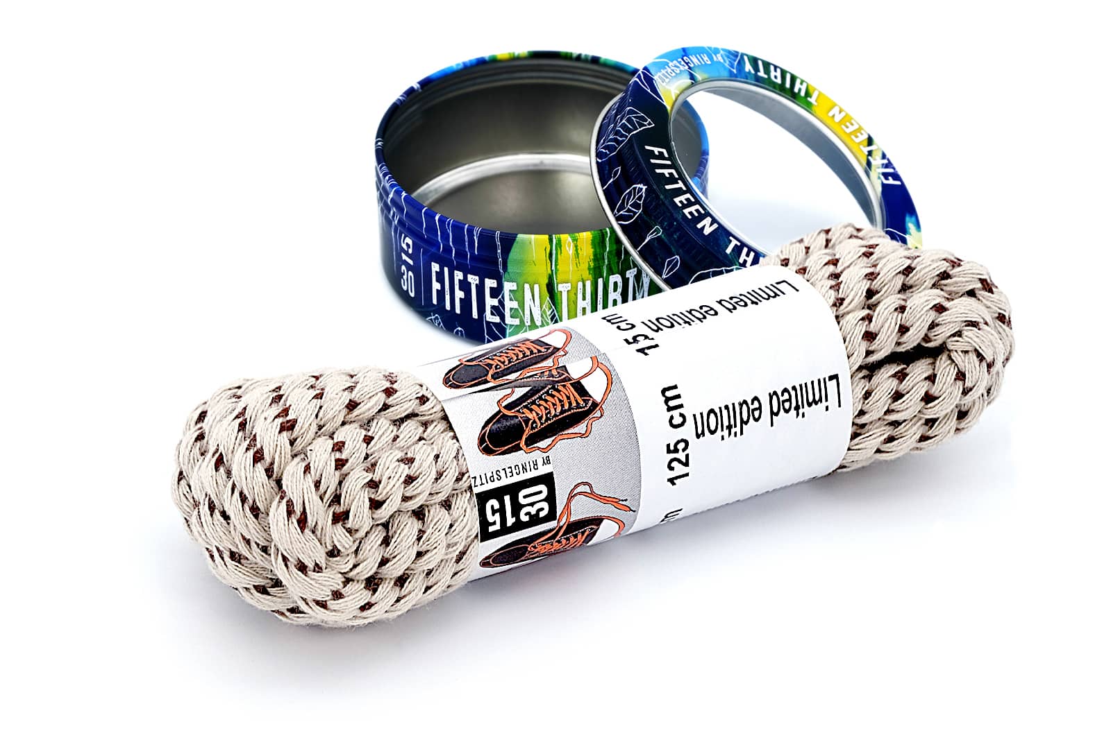 Unsere limitierten Rundsenkel aus Baumwolle vereinen Qualität und Stil in einem besonderen Design. Diese 3 mm dicken Kordel-Schnürsenkel sind in den Farbkombinationen ?Beige/Bordeaux? und ?Mittelbraun/Beige? erhältlich und passen perfekt zu Sneakern und Freizeitschuhen. Gefertigt aus 100% Baumwolle für natürlichen Look. Jeder Rundsenkel wird in einer stilvollen Metalldose geliefert, die für nachhaltige Aufbewahrung sorgt ? ideal für anspruchsvolle Schuhliebhaber, die Wert auf Details legen.