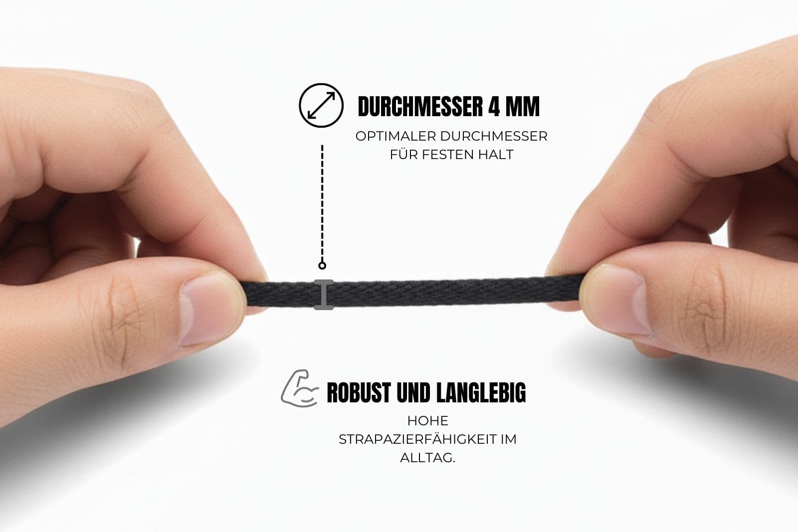 Die schmalen, flachen gewachsten Schnürsenkel mit 4 mm Breite zeichnen sich durch ihre robuste und langlebige Qualität aus. Die gewachste Oberfläche verleiht den Schnürsenkeln zusätzlichen Schutz gegen Feuchtigkeit und sorgt für eine elegante Optik.