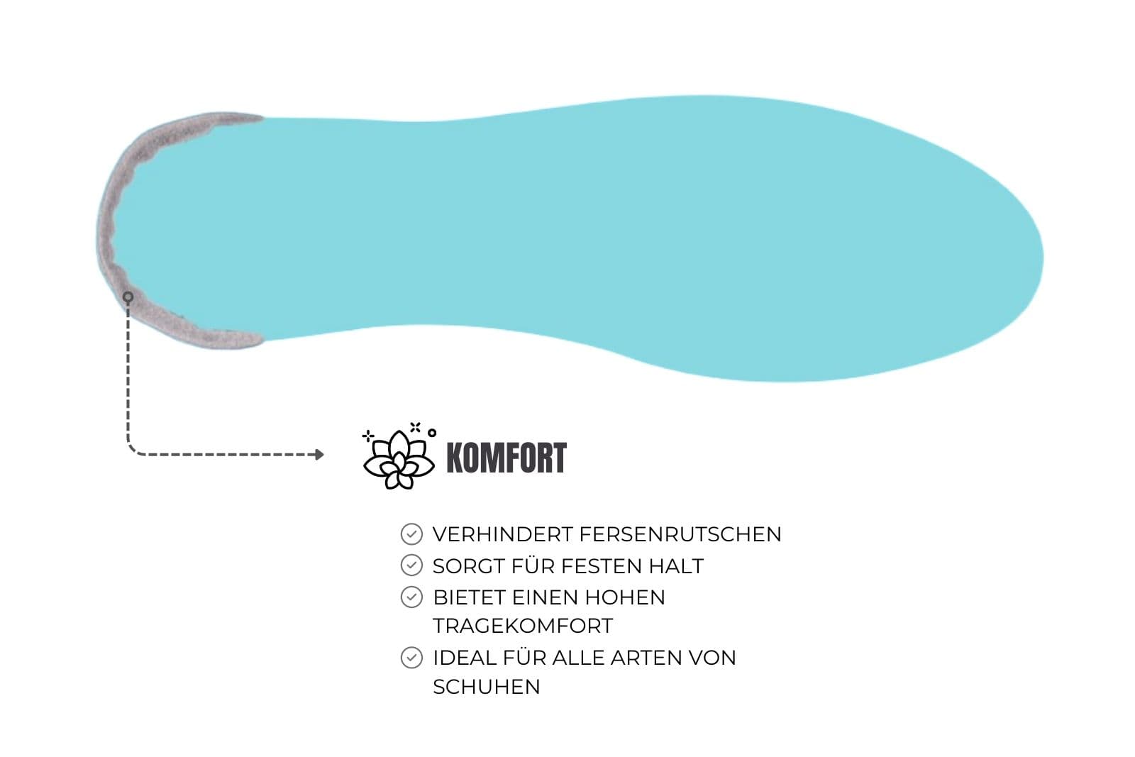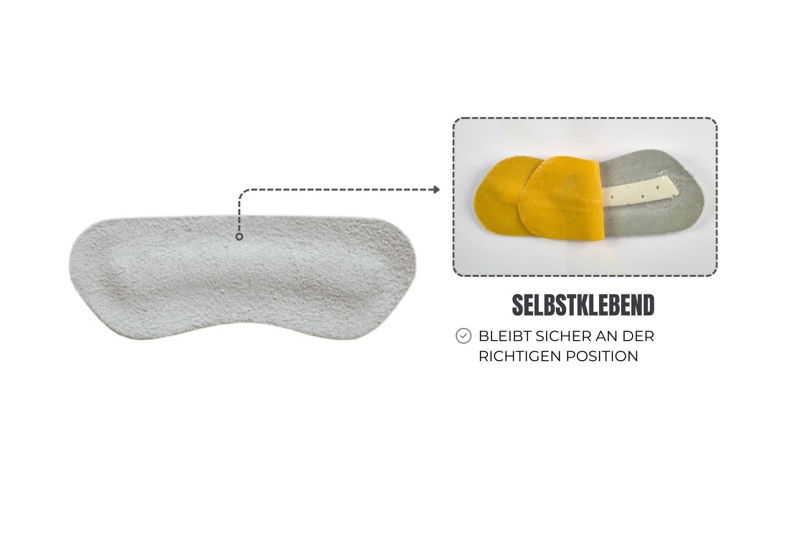 Die selbstklebende Rückseite ermöglicht ein einfaches Einsetzen in die Fersenkappe: Folie abziehen und fest einkleben kein Verrutschen, auch bei Bewegung.