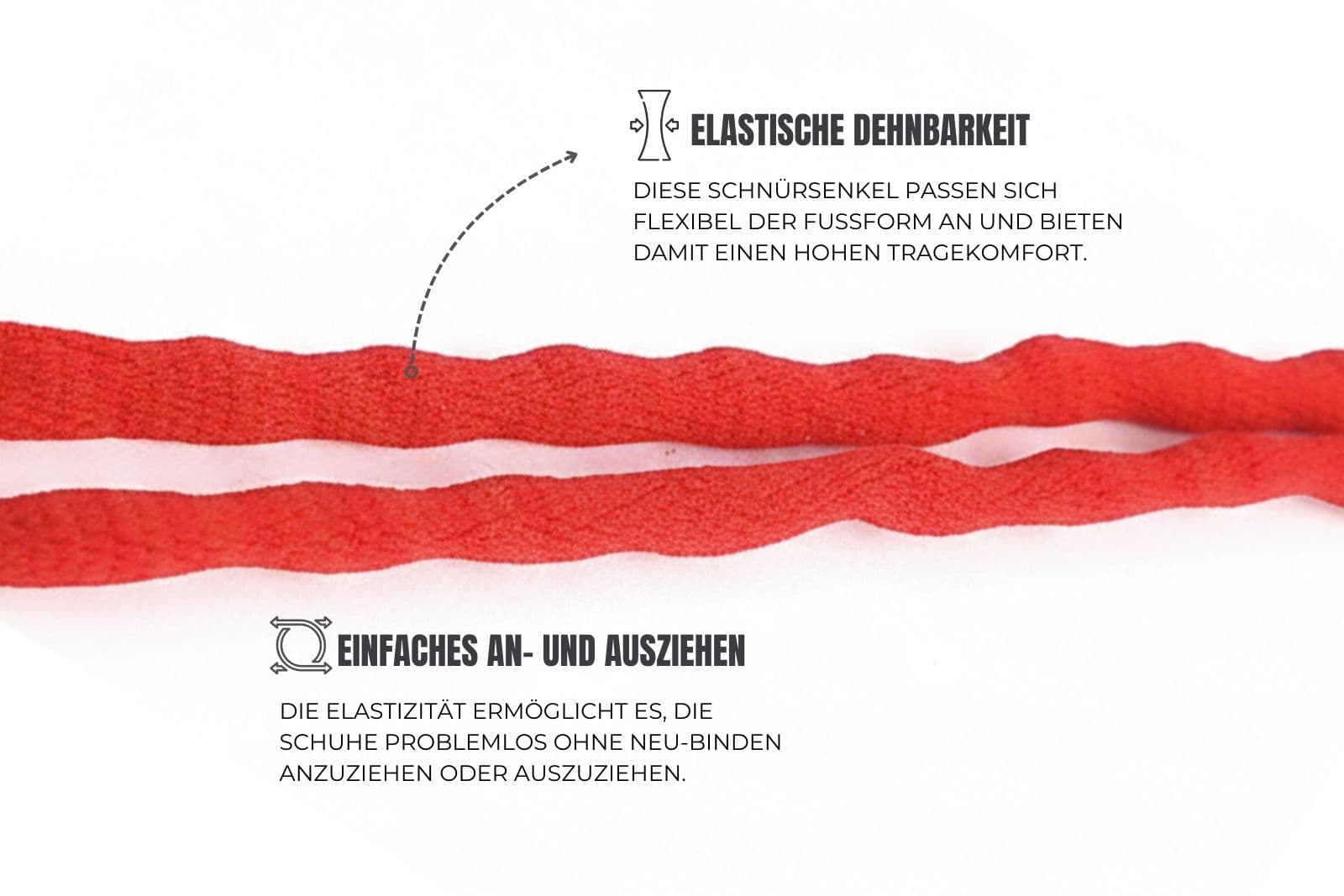 Erhältlich in den Farben Weiß und Rot, vereint der SportPlus Schnürsenkel Funktionalität mit stilvollem Design. Perfekt für alle, die Wert auf Komfort, Sicherheit und Zuverlässigkeit beim Laufen legen.